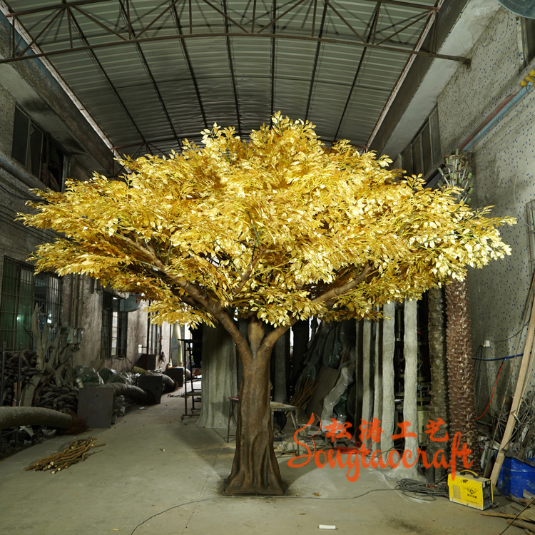 仿真黃金榕樹主要是以玻璃玻璃纖維模擬和水泥雕塑模擬制成的,造型非常堅硬而且還美觀,由于榕樹的枝葉安裝采取的是“新工藝”這種安裝程式,顧客們可自由擺控,可以隨意擺出你喜愛的造型出來。