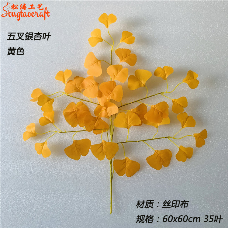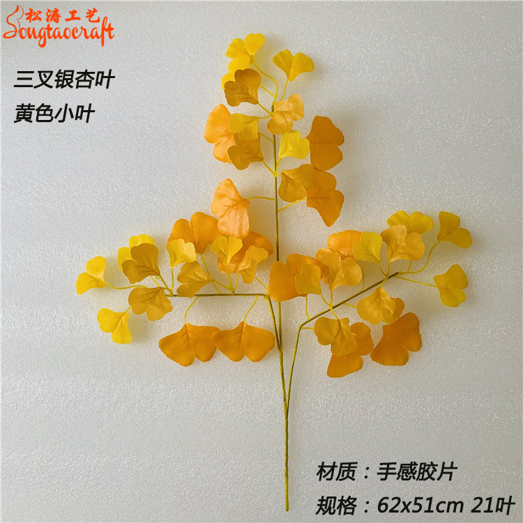 銀杏葉包裝規格:120x98x70cm/300打 ,12支/打,手感銀杏葉顏色可選:黃色、綠色。規格可選:五叉銀杏葉:60x60cm 35葉 三叉手感銀杏葉-大葉:61x63cm 21葉 三叉手感銀杏葉-小葉:62x51cm 21葉 。 如下為單支手感銀杏葉細節效果: