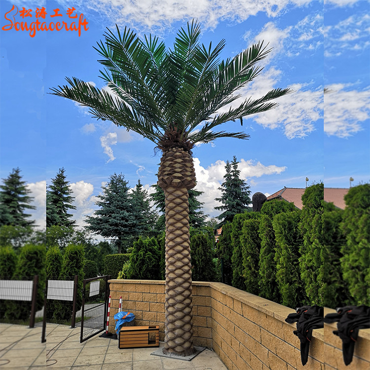 仿真海棗樹是仿真樹行業比較熱門的一種樹,主要采用玻璃鋼樹脂混合纏繞制作而成,由于仿真海棗樹普遍于戶外較多,所以枝葉在制作的時候都是用阻燃防褪色的材質而做的,杜絕高溫紫外線的侵擾,更重要的是還能抗15級以上的風壓。