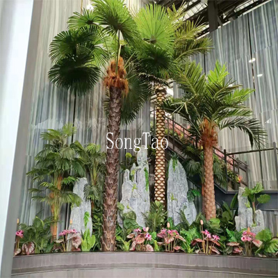 仿真棕櫚樹系列款式繁多,可用做室外室內(nèi),尺寸定制3-20米都可以,主要采用玻璃鋼混合樹脂纏繞制作而成,樹皮耐磨蝕、抗風(fēng)壓,一直是綠化園林工程首選的仿真樹。