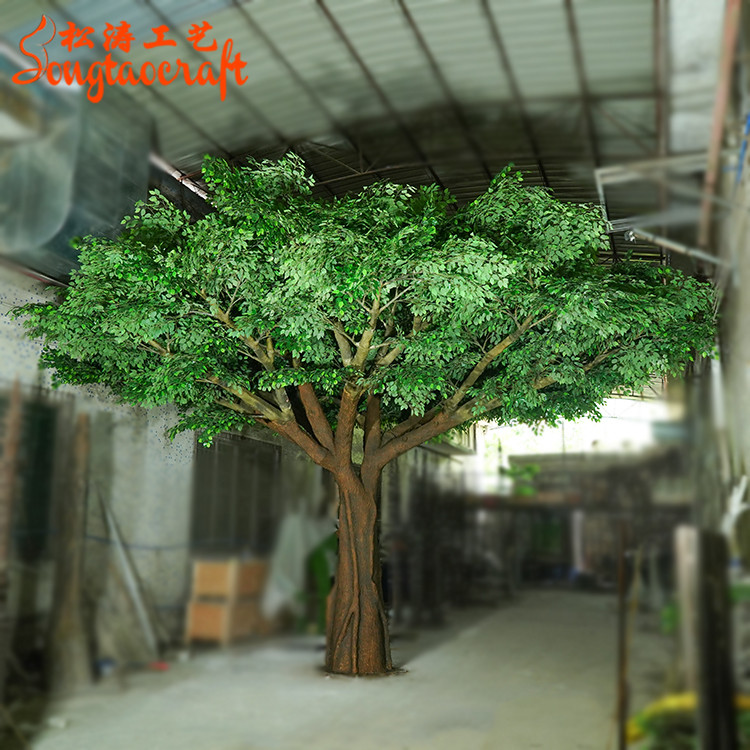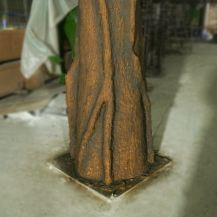 大型仿真樹榕樹樹形奇特,壽命長,根系發達,被人們稱為“獨木成林”的風景樹和風水樹。仿真榕樹的古典與現代酒店的豪華氣氛相映襯,自然景觀與現代酒店的完美融合,體現了酒店的獨特風格。由于高仿真擬態效果可以讓仿真榕樹達到以假亂真的境界,在景觀裝飾中,可以打破建筑物的呆板、僵硬,使其趨于自然,讓人有曲徑通幽之感,是比較適合以自然生態為主的園林景觀裝飾。