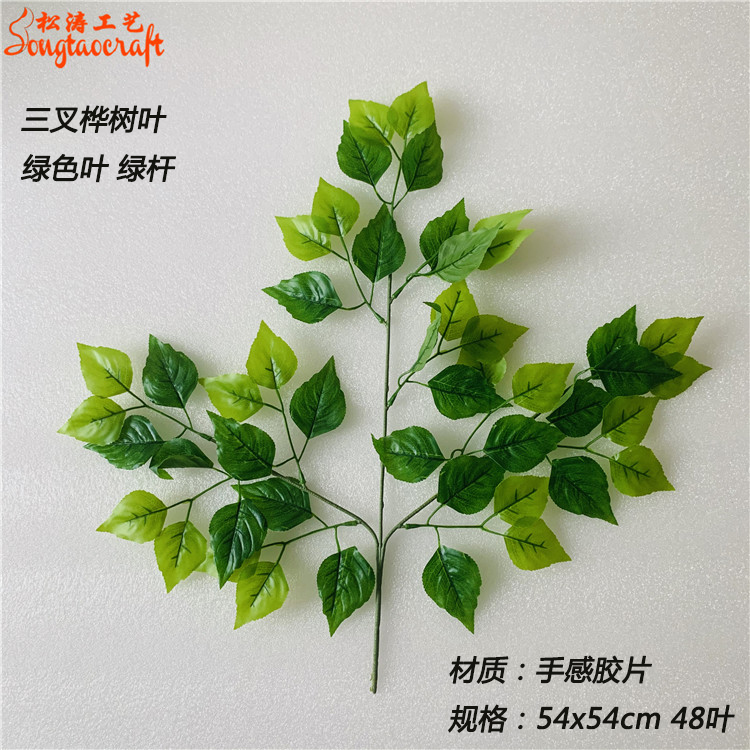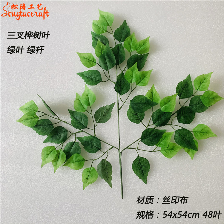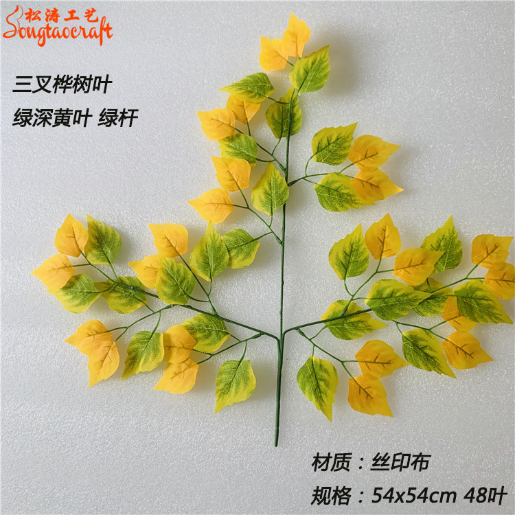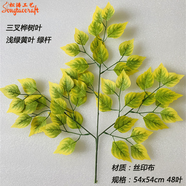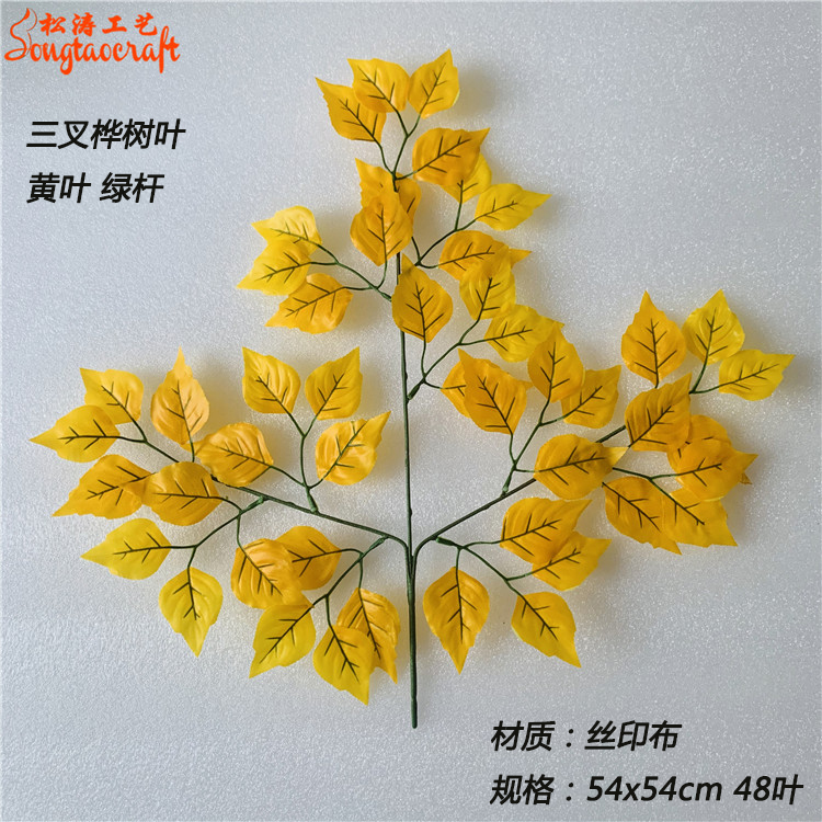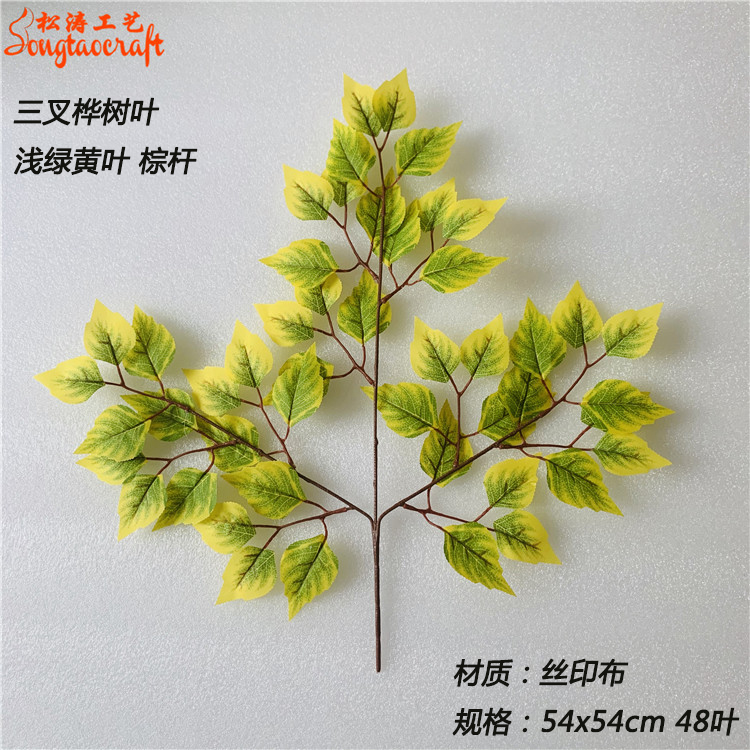 包裝規格:120x98x70cm/300打,三叉仿真白樺葉八種顏色款式可選:綠深黃葉+棕桿,黃色葉+綠桿,黃色+棕桿,綠色葉+綠桿,綠黃葉+棕桿,綠深黃葉+綠桿,綠黃葉+綠桿,手感綠葉。